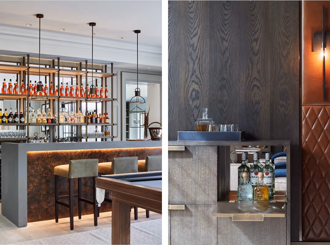 Elegant, timeless interiors unfold to reveal this home’s many layers. The luxurious cinema room flows on to the formal dining area, which connects seamlessly to an expansive reception room. Next up, another entertainment room features a kitchen with a wood-fired pizza oven, built-in chicken rotisserie and Teppanyaki grill.The casual family living room with open fireplace opens onto to the covered outdoor terrace, garden and pool for year-round indoor-outdoor entertaining. Overlooking the casual dining area, the chef’s kitchen includes stone benches, Miele appliances, while a second kitchen with commercial grade fridges is designed for large scale catering. The adjoining service wing comprises a laundry, powder room, mud room and housekeeper’s room.