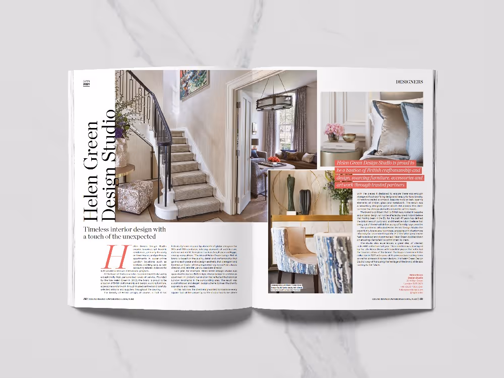 Helen Green Design, alongside Allect’s stable of brands, Lawson Robb and Rigby & Rigby is pleased to announce that they have been featured in Great British Brands’ 2021 Edition. Launched in December 2015, this annual bible is dedicated to supporting British luxury and celebrating the very finest products, companies and services that the UK has to offer.Discussing Helen Green Design, the article says:Helen Green Design Studio creates luxurious yet liveable residences, primarily focusing on town houses and penthouse apartments in super-prime London locations such as Chelsea and Belgravia, as well as country estates. It also works with private clients on international projects. At the heart of the business lies its commitment to delivering exceptionally high, personalised levels of service. Founded by the late Helen Green in 2002, the brand is proud to be a bastion of British craftsmanship and design, sourcing furniture, accessories and artwork through trusted partners and carefully selected artisans and suppliers throughout the country.The beauty of British design, of course, is that it has historically been inspired by elements of global design in the 18th and 19th centuries, infusing elements of architecture, material and motifs from places such as Asia, France and Egypt, among many others. ‘The idea of Helen Green being a British brand is based on the quality, detail and craftsmanship that go into each piece and a design aesthetic that is elegant and timeless, with a bit of the unexpected,’ says Ivana Allain, studio director, and Jennifer Jarvis, associate director.Last year, for example, Helen Green Design Studio was appointed to create a British-style interior design for a Victorian apartment in London’s Kensington that reflected the historical London landmarks in the surrounding area. The result was a sophisticated and elegant design scheme to meet the client’s aspirations and needs.In this instance, the client really wanted to maximise every square foot of the property, so the studio had to be clever with the pieces it designed to ensure there was enough storage without sacrificing design and beauty for functionality. It therefore created a compact, bespoke modular desk, layering elements of timber, glass and metalwork. The result was a beautifully designed piece which still allowed the client to move the storage elements around to suit his needs.The brand is confident that its Britishness, rooted in bespoke and artisanal design, will not be affected by Brexit. ‘I don’t believe that having been in the EU for the past 47 years has defined the Britishness of our brand, and therefore I don’t believe that being out of the EU will define us any differently,’ says Jennifer.The pandemic afforded Helen Green Design Studio the opportunity to evaluate its process, engaging with clients more informally but also more frequently. At a time when people were feeling isolated and disconnected, Helen Green doubled down on ensuring clients felt its commitment to them.The studio also experienced a great deal of interest in its HGD collection last year. The collection was developed by the late Helen Green with beautiful pieces that reflected the timeless ethos of the brand. The hope is to relaunch the collection in 2021 with some of its previous best-selling items as well as some exciting new designs. It is Helen Green Design Studio’s way of honouring the heritage of the brand while also looking to the future.Read more here.